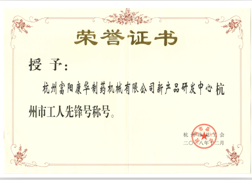 我公司新產品研發(fā)中心被評為2018年度杭州市“工人先鋒號”。